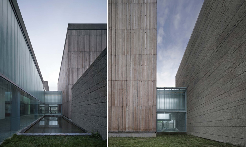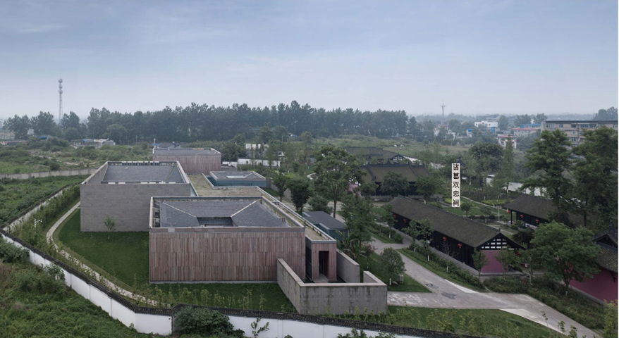 新館與雙忠祠共生,四組矩形體量錯動(dòng)布局,以虛實(shí)現量對話(huà)延續院落文脈。承襲川西民居“天人合一”理念,就地取用青磚、木構等材質(zhì),竹木肌理與石灰勾縫還原質(zhì)樸氣質(zhì)。建構邏輯融合編夾壁墻等傳統工藝,以在地性建構詮釋當代博物館的時(shí)空對話(huà)。