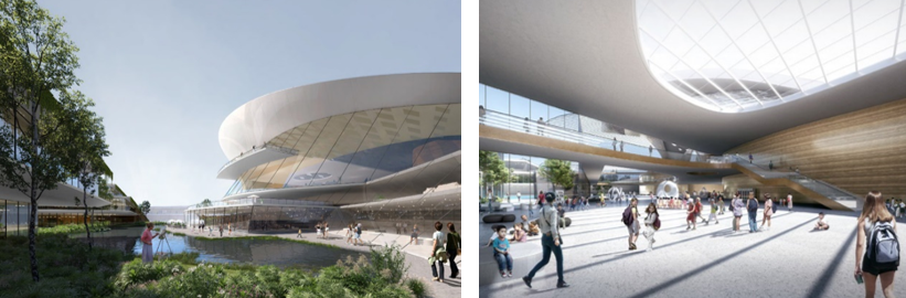 宿遷市民活動(dòng)中心以“鯤鵬展翅”為形,流線(xiàn)雙翼轉譯“宿城三遷”文脈。中軸串聯(lián)三館,生態(tài)廊橋鏈結城市公園,參數化羽翼幕墻捕捉光影。室內外植入階梯劇場(chǎng)、云廊等交互場(chǎng)景,滲透式灰空間激活市民互動(dòng),融合楚漢氣韻與當代美學(xué),構建兼具精神圖騰與煙火氣息的城市人文地標。